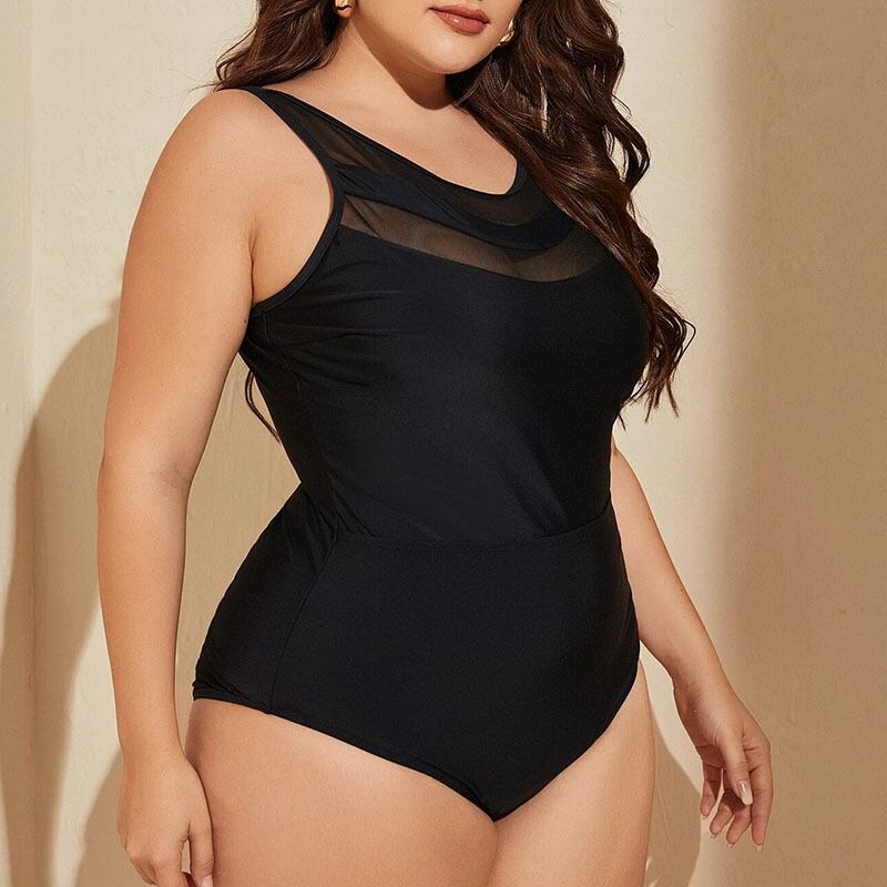 送料無料 2021 黒水着女性のセクシーなメッシュ水着ワンピース大きいサイズワンピーススーツビーチウェア夏水着 4XL ブラック 大きめサイズ サマー 夏物 AE1212553322295806025059
