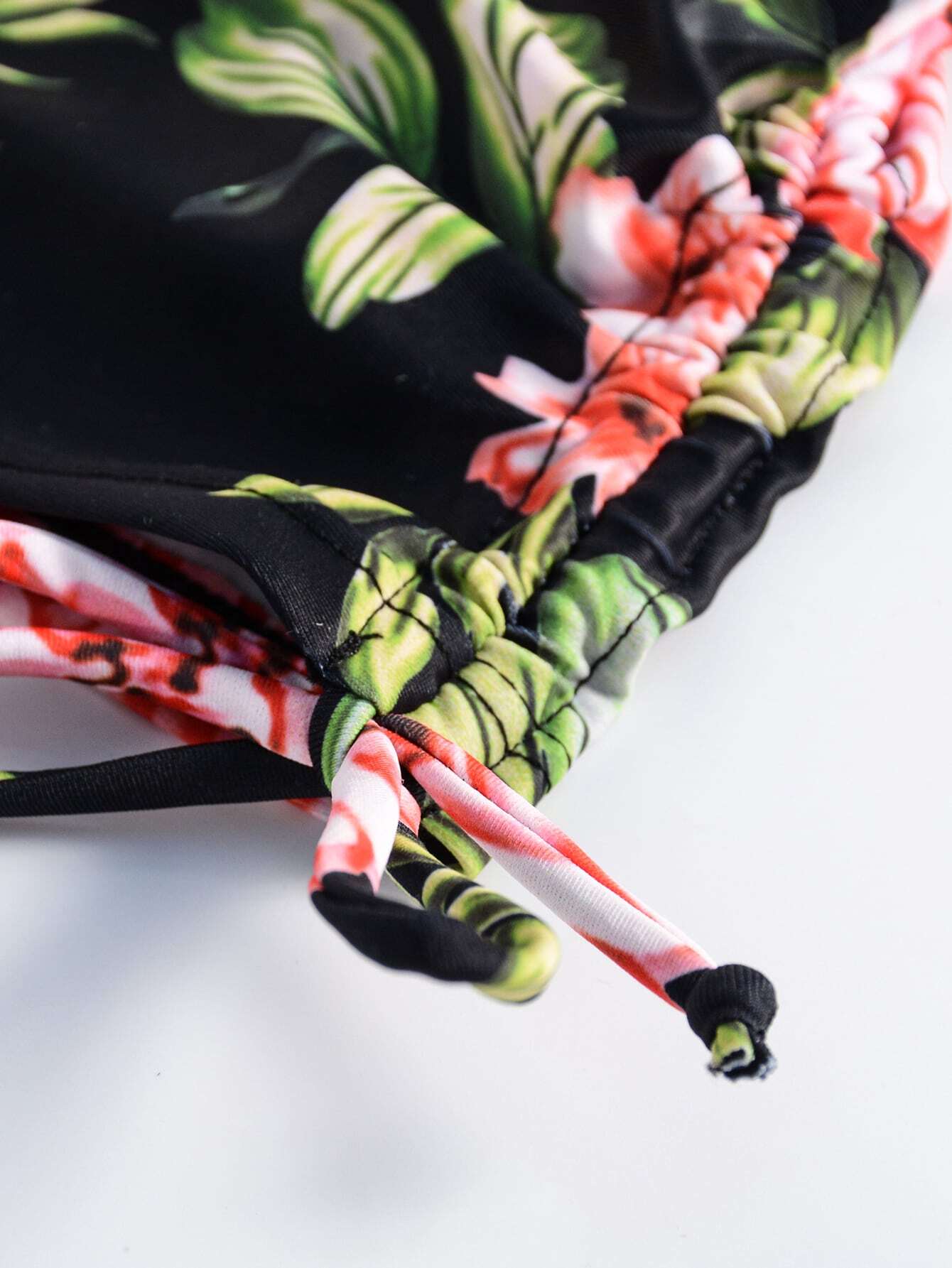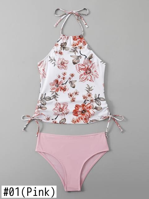 送料無料 2023 花柄タンキニセットツーピース水着女性巾着サイドネクタイ背中の開いた水着水着ビーチウェア プリント AE1212553322210494062032