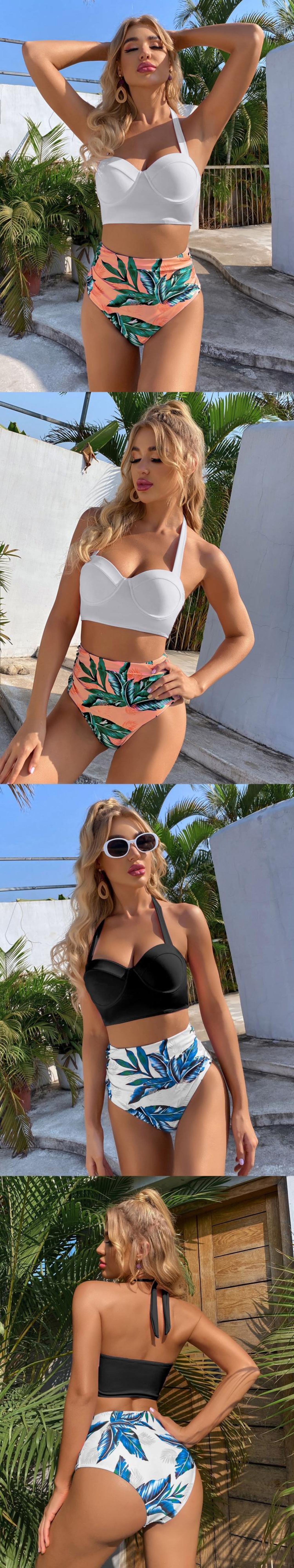 送料無料 ウエストビキニ 2022 プッシュアップ水着女性ホルター水着プリント水着海水浴者メイヨー Biquine AE1212553322268407634896