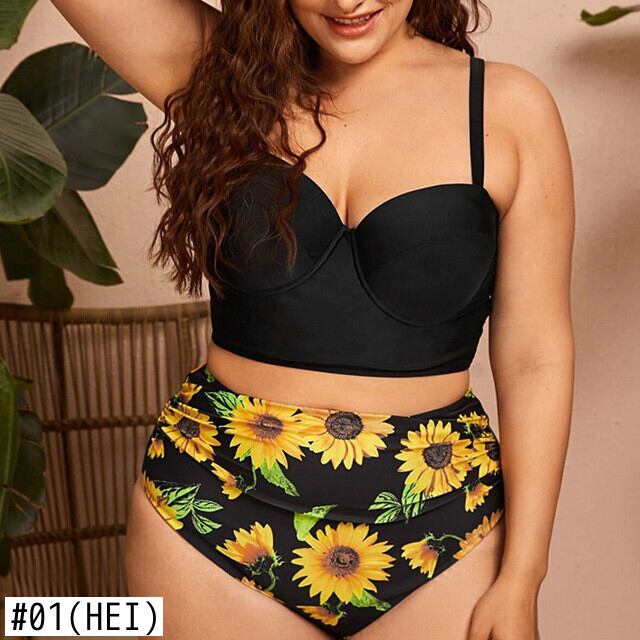 送料無料 2022 大型ビキニセットひまわり水着女性プッシュアップ水着ウエストビーチウェア夏水着 4XL 大きめサイズ サマー 夏物 フラワーデザイン AE1212553322255174113164
