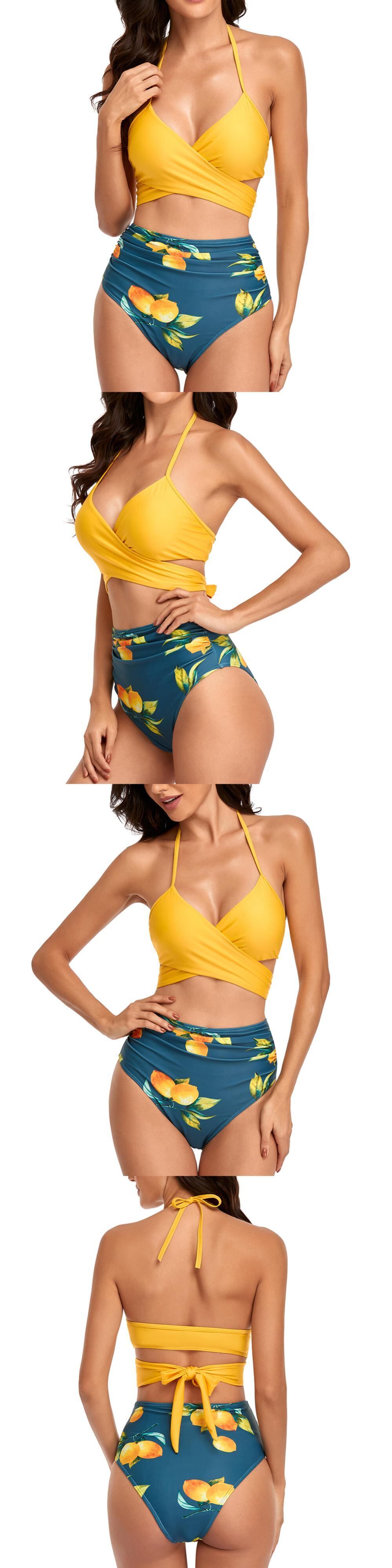 送料無料 プリントビキニ 2023 女性水着ソリッドウエスト花柄水着セクシーな海水浴水泳水着 ソリッドカラー AE1212553322225755611489