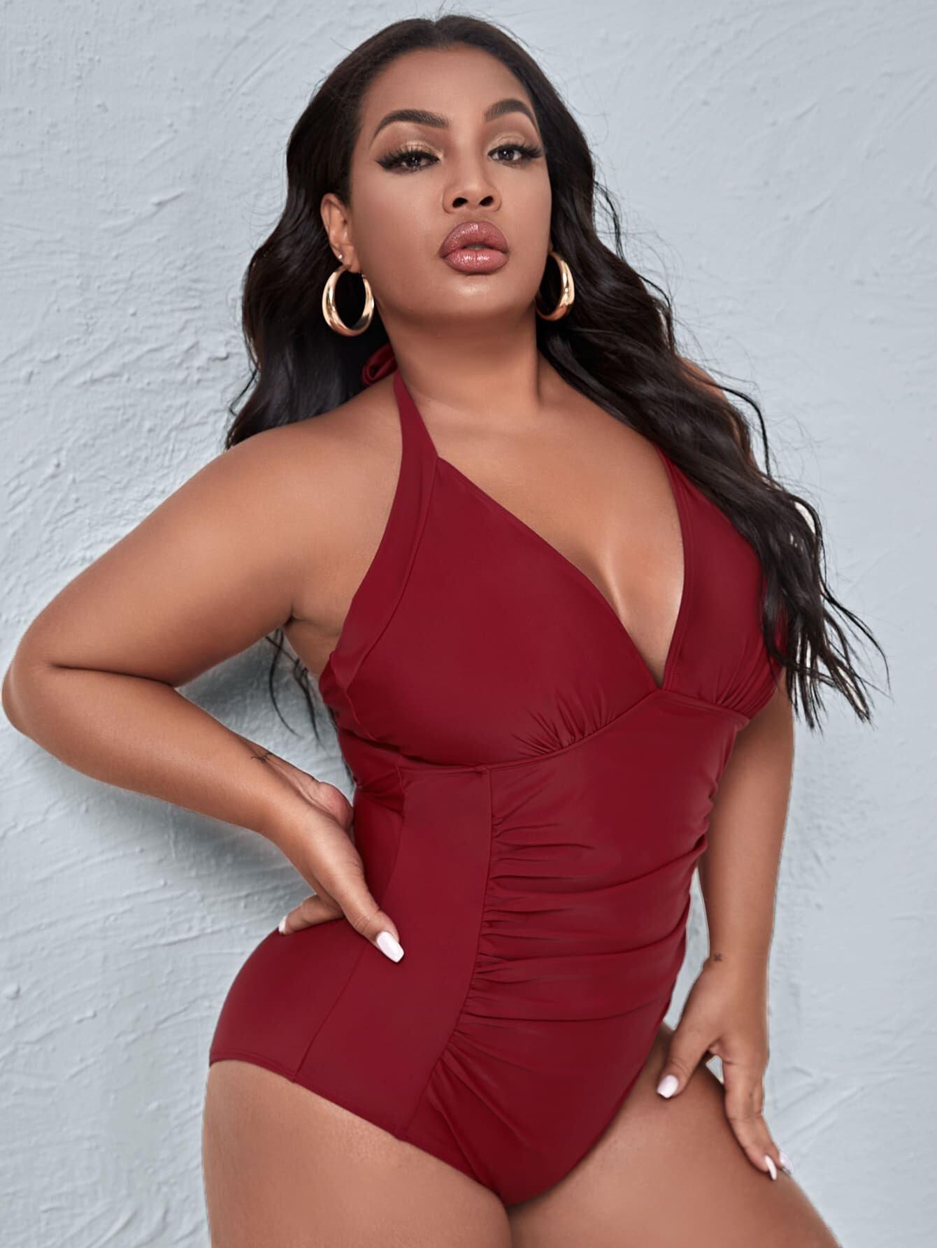 送料無料 2021 レッド水着女性のセクシーなホルター水着ワンピース大きいサイズワンピーススーツビーチウェア夏水着 4XL 大きめサイズ サマー 夏物 AE121255332225368047653