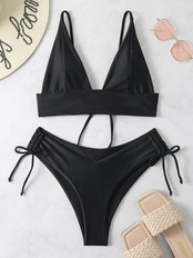 送料無料 巾着カットビキニ 2023 女性 V ネック水着固体水着ビーチウェア海水浴水泳水着 Vネック ソリッドカラー AE121255332226790640909