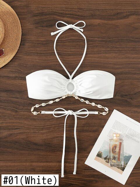 送料無料 リングリンクネクタイ背中の開いたホルタービキニトップ女性 2023 固体水着ブラジャー水着海水浴者水泳水着水着 ソリッドカラー AE1212553322293797040176