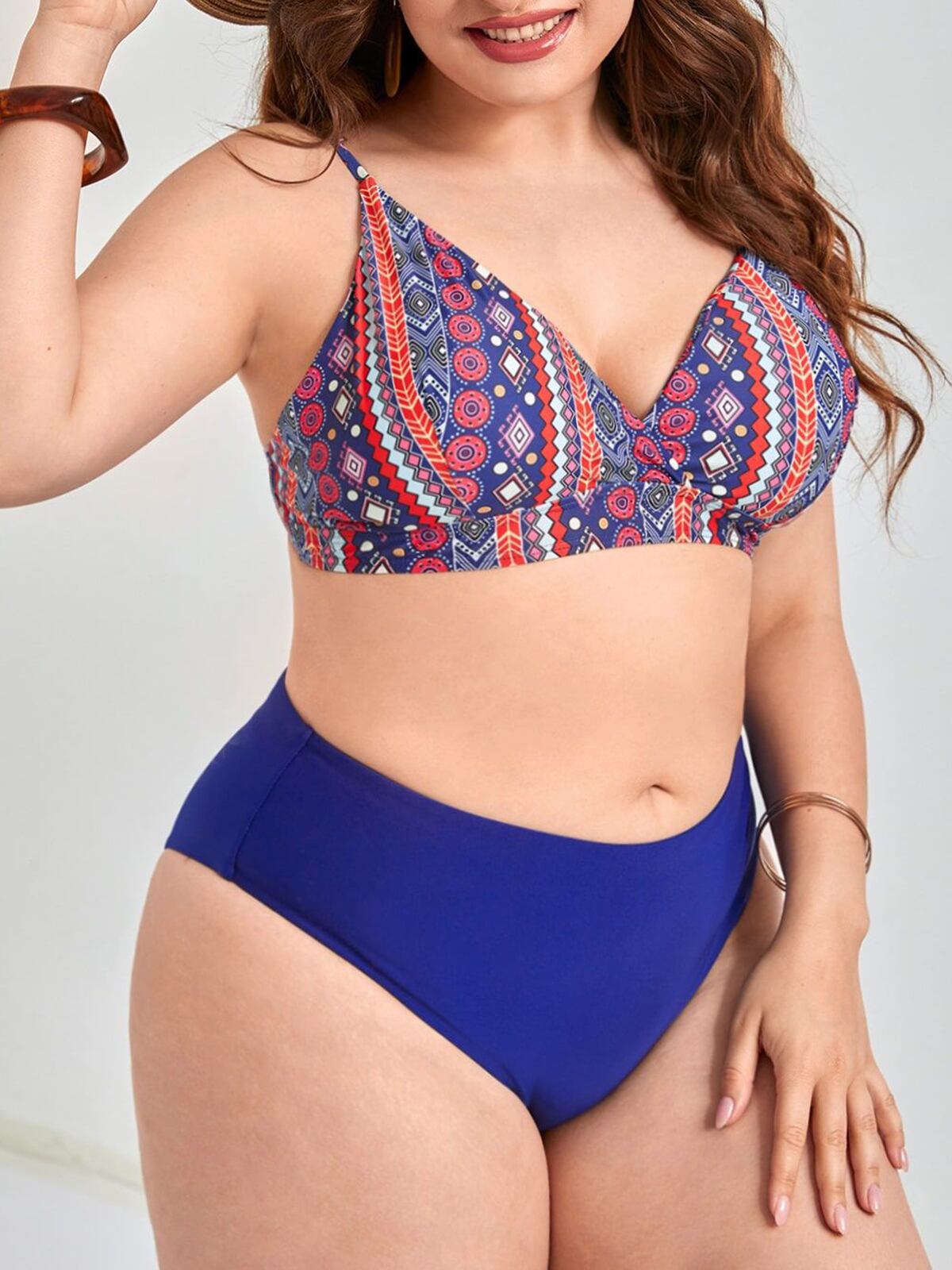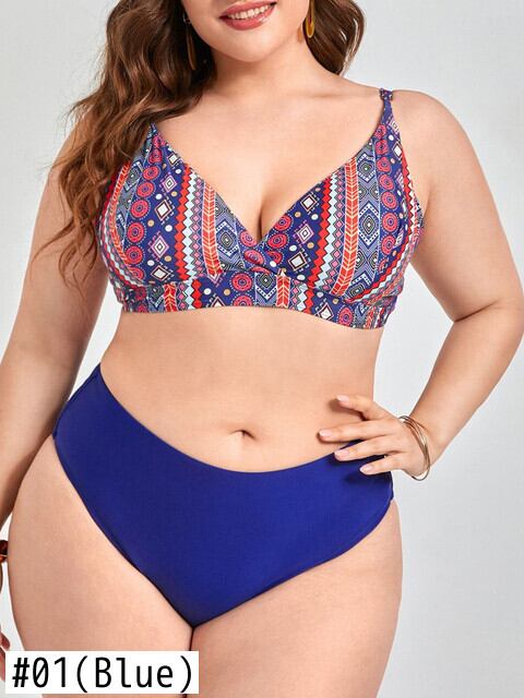 送料無料 プラスプリントビキニミドルウエスト水着女性 2022 大きいサイズ水着水着ビーチウェア水泳 大きめサイズ AE1212553322283816326040