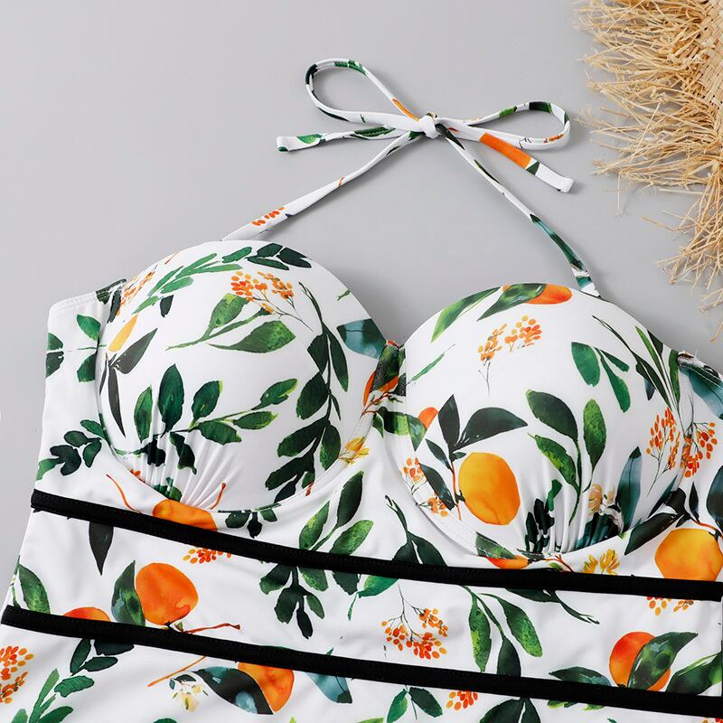 送料無料 2023 葉プリント水着ワンピース大きいサイズの水着女性プッシュアップワンピーススーツビーチウェア夏水着 大きめサイズ サマー 夏物 AE1212553322286658054898