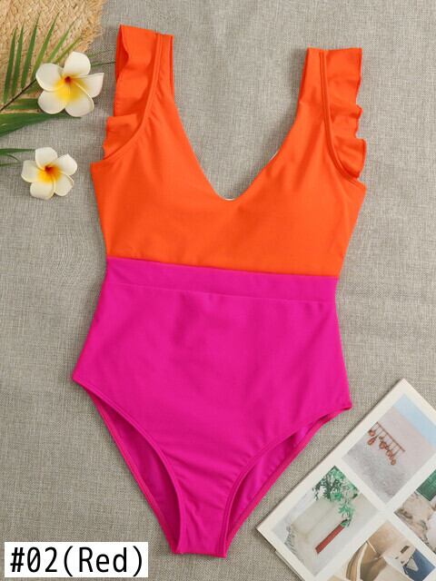 送料無料 2023 フリル水着女性ワンピース水着背中の開いたボディスーツ海水浴水着スポーツ夏のビーチウェア サマー 夏物 AE12125533222198855195