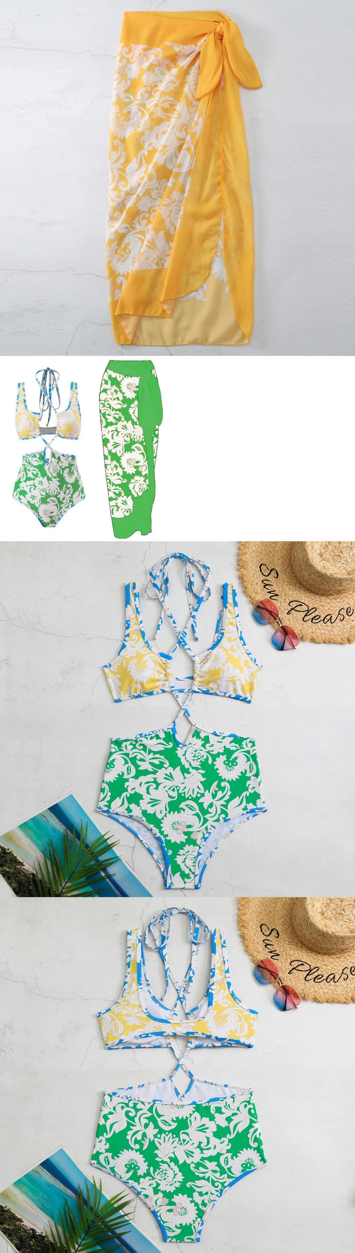 送料無料 2023 プリント水着女性ワンピースビーチスカートホルター水着海水浴水泳水着ビーチウェアモノキニ AE1212553322250099484011