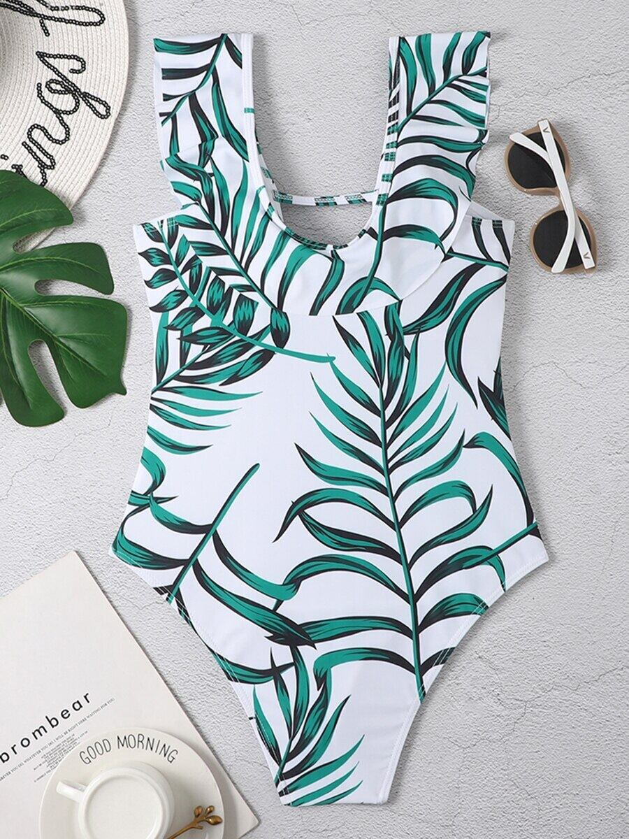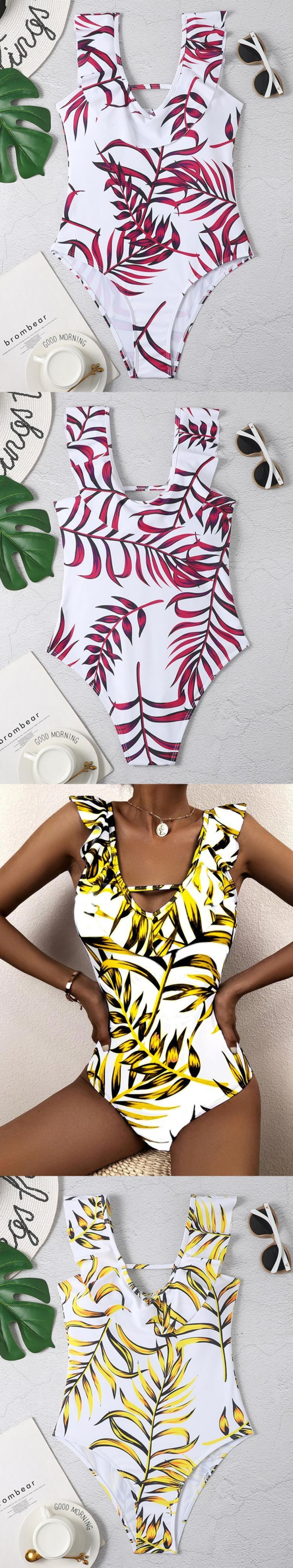 送料無料 2023 葉プリント水着女性ワンピースフリル水着セクシーなボディスーツ海水浴水着夏のビーチウェア サマー 夏物 AE1212553322283006505294