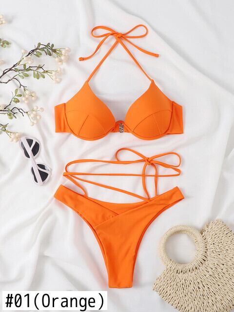 送料無料 2023 プッシュアップビキニオレンジ水着女性固体セクシーなホルター水着海水浴水泳水着ビーチウェア ソリッドカラー AE121255574340336574
