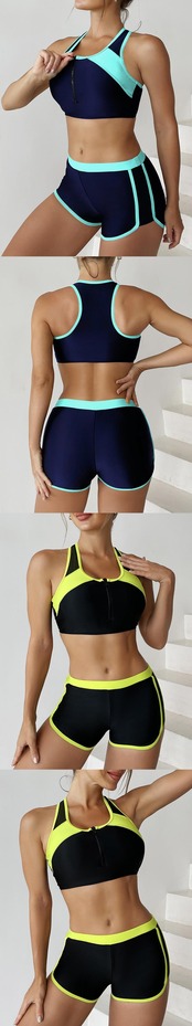 送料無料 2023 ジッパービキニセットツーピース水着女性ショーツスポーツ水着水着ビーチウェア夏 サマー 夏物 ブルマー AE121255567829446105