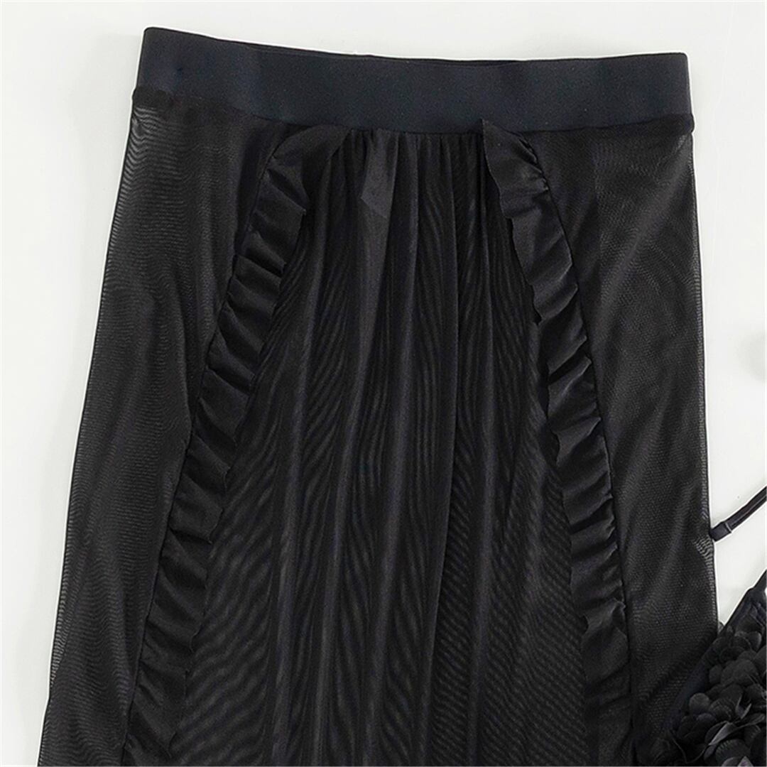 送料無料 3 個ホルター三角ビキニ 2023 女性ビーチスカート黒水着フリル水着入浴水泳水着 ブラック AE121255579544271102