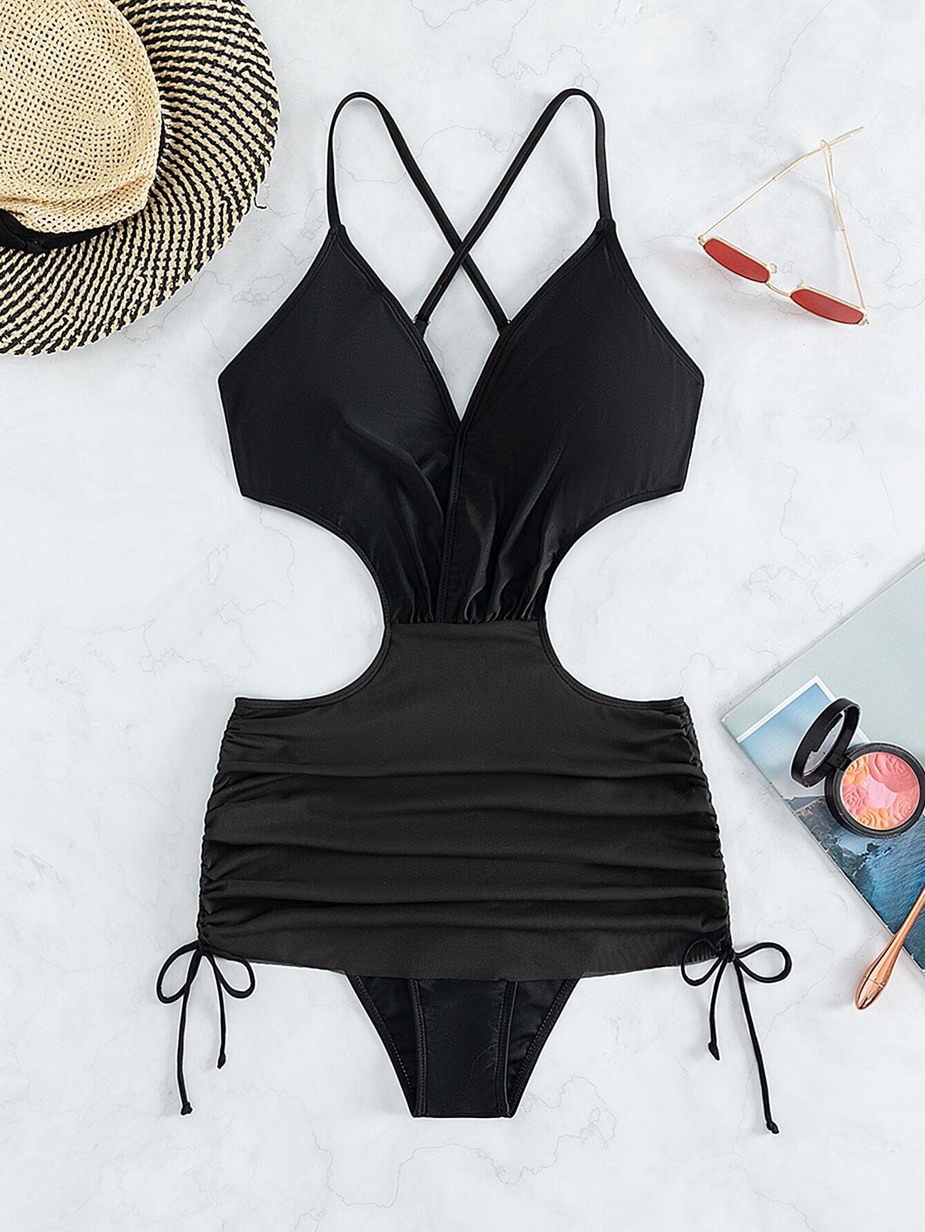 送料無料 2023 無地巾着十字ネクタイ背中の開いた水着女性ワンピース水着ビーチウェア水着水泳水着 AE121255584230784972