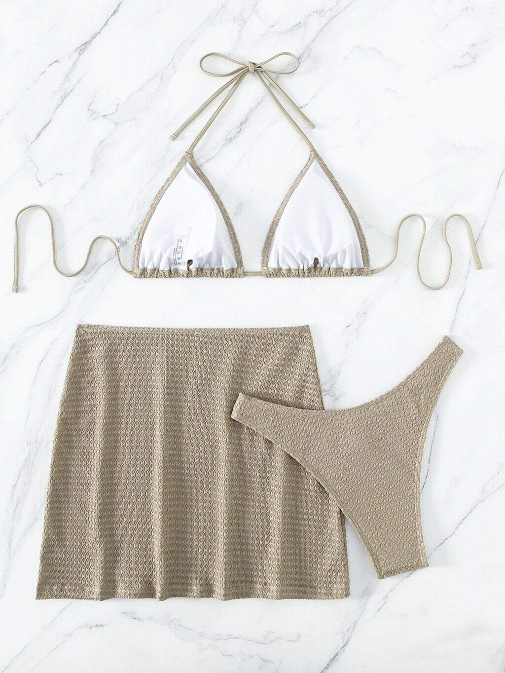 送料無料 3 個ホルター三角ビキニ 2023 女性ビーチスカートカーキ水着固体水着入浴水泳水着 ソリッドカラー AE121255586679663757