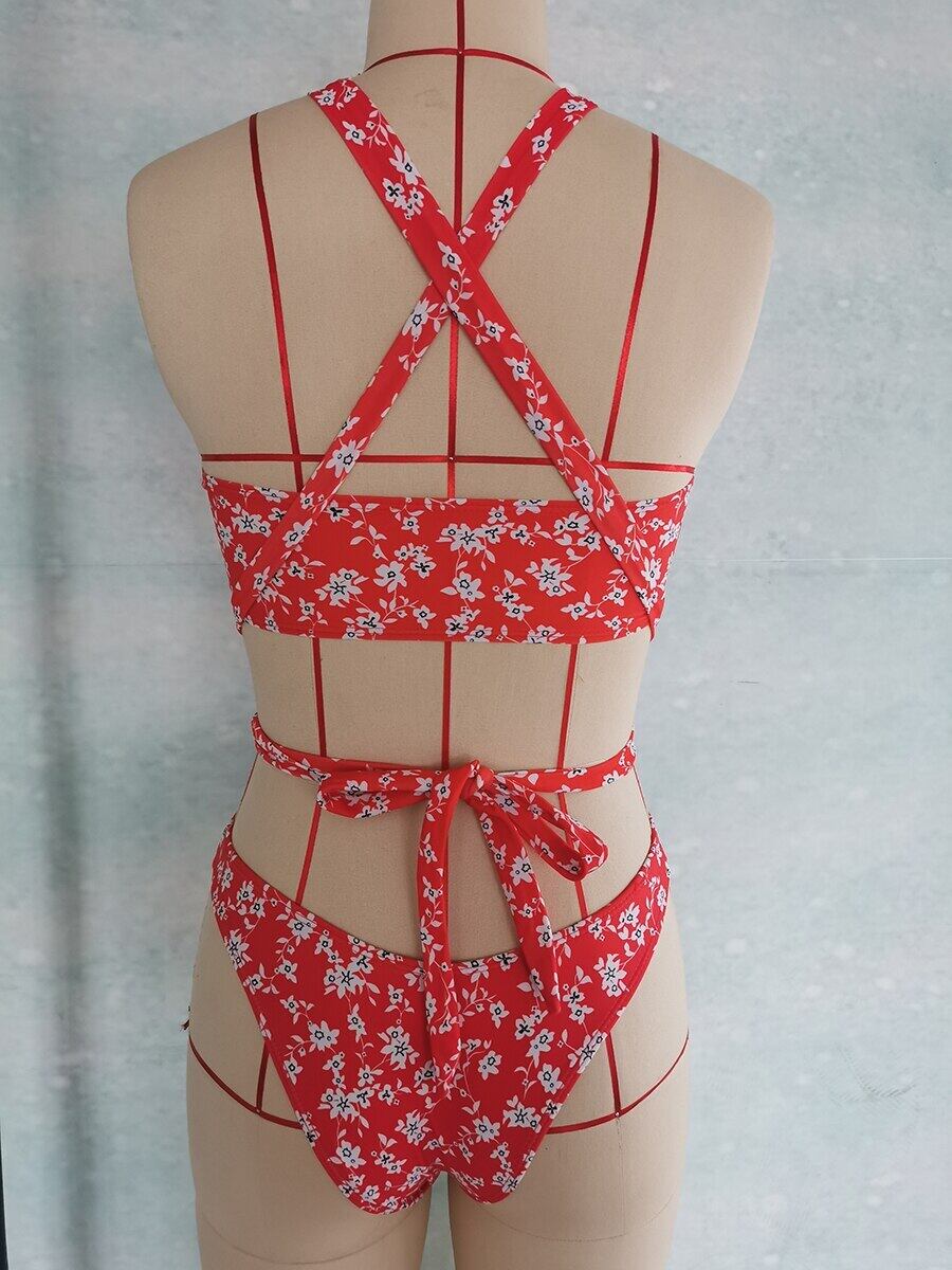 送料無料 バンドーパッド入りビキニ 2023 リングリンク水着女性プリント水着セクシーな海水浴者水泳水着ビーチウェア 指輪 AE121255578900296738