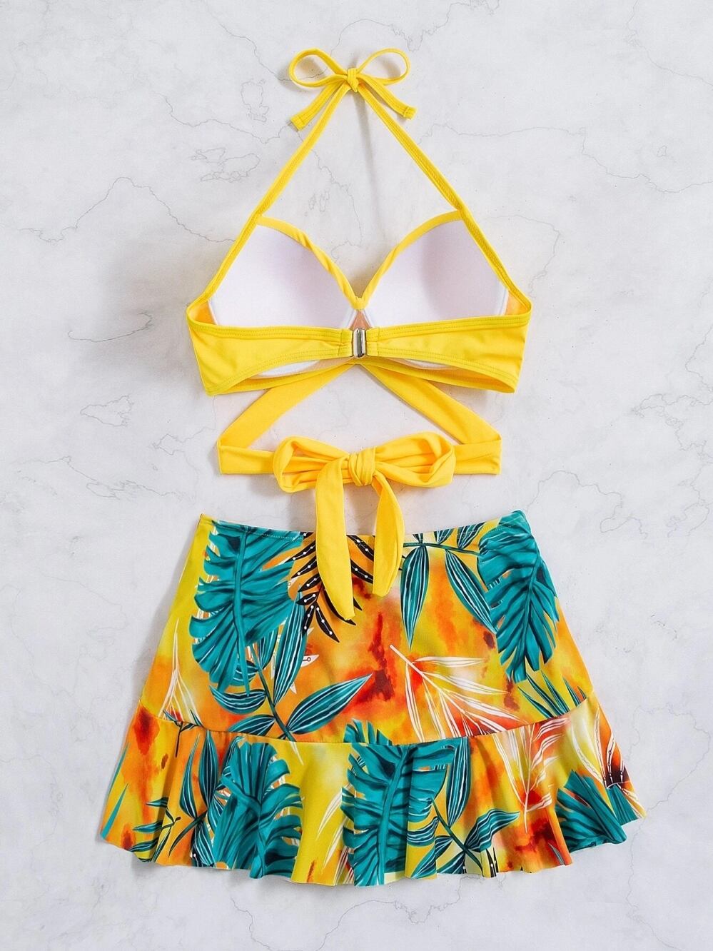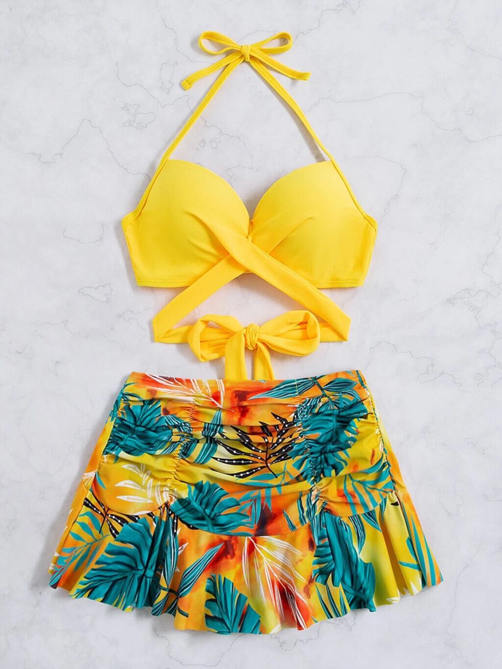 送料無料 2023 植物ラップホルタースコートビキニプッシュアップ水着女性のセクシーな水着水泳海水浴水着ビーチウェア AE121255543486657145