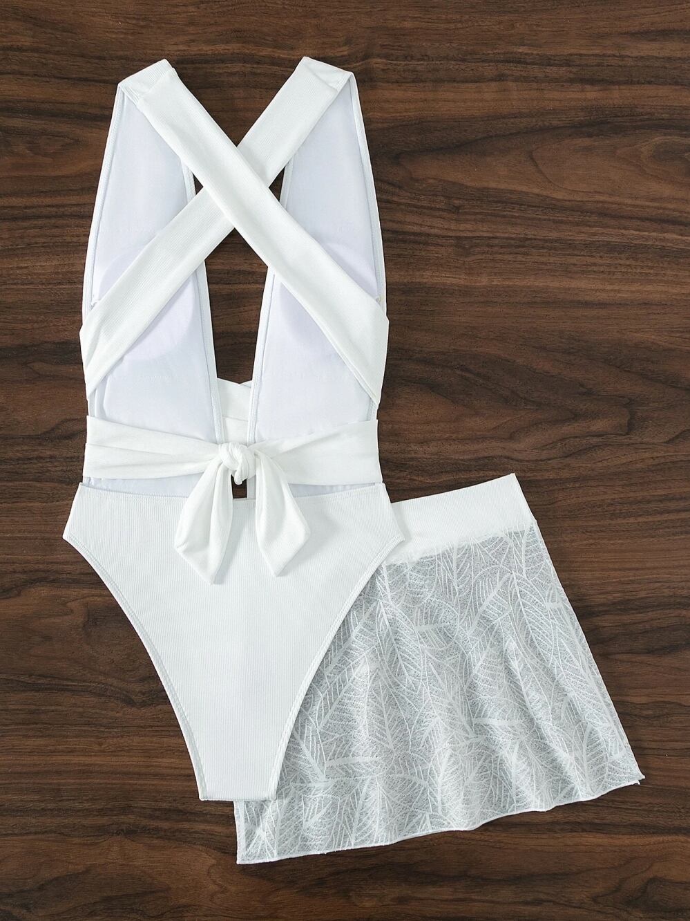 送料無料 2023 クリスクロス急落ワンピース水着ビーチスカート付き白水着ビーチウェア水着水泳水着 ホワイト AE121255524521136937