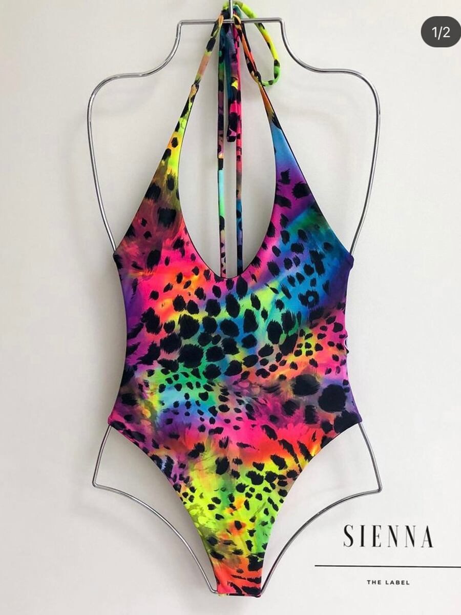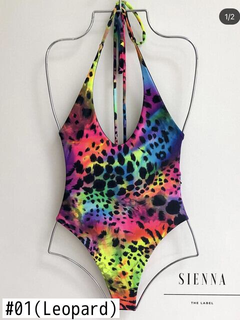 送料無料 2023 ランダムヒョウ柄水着女性ワンピースホルターセクシーな水着ビーチウェア海水浴者水泳水着 プリント AE121255513581737204