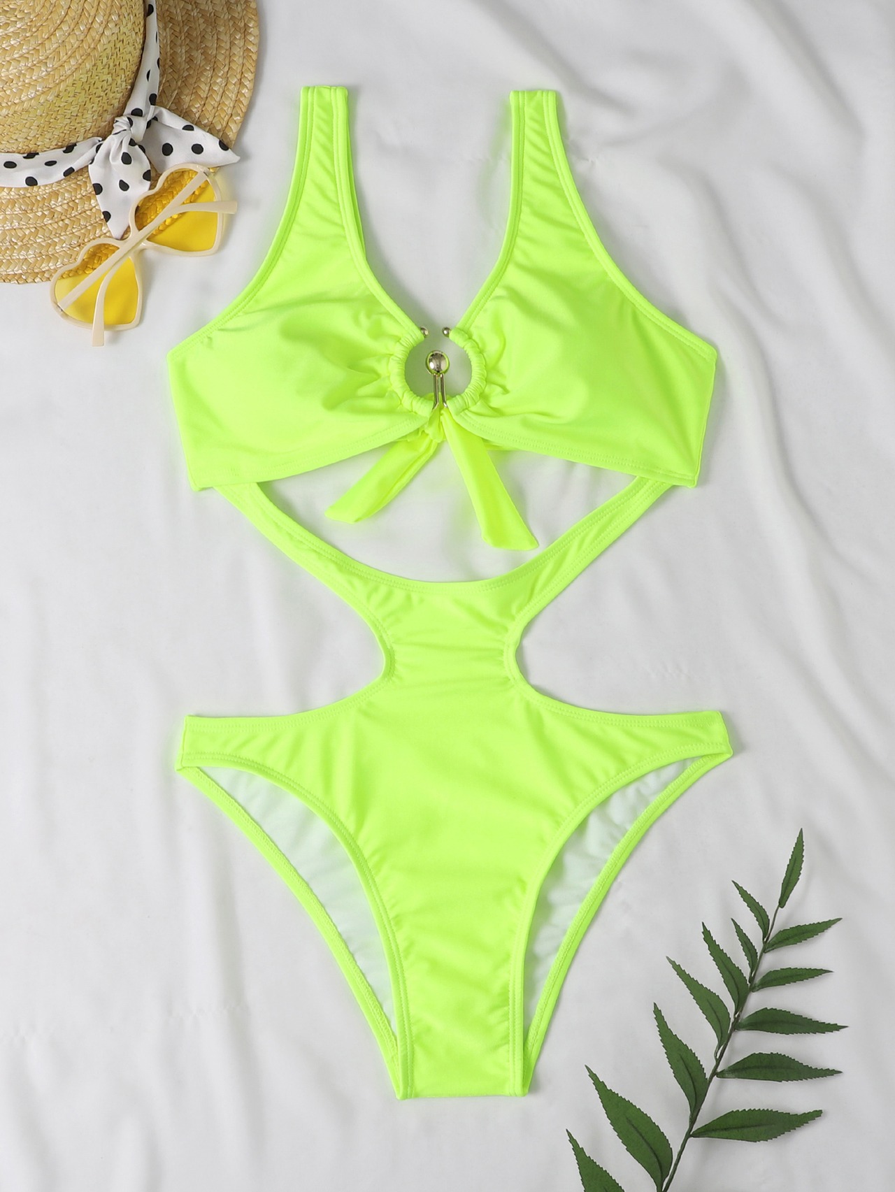 送料無料 2023 リングリンクモノキニグリーン水着女性ワンピースセクシーなカットアウト水着ビーチウェア海水浴水泳水着 指輪 AE121255564137204880