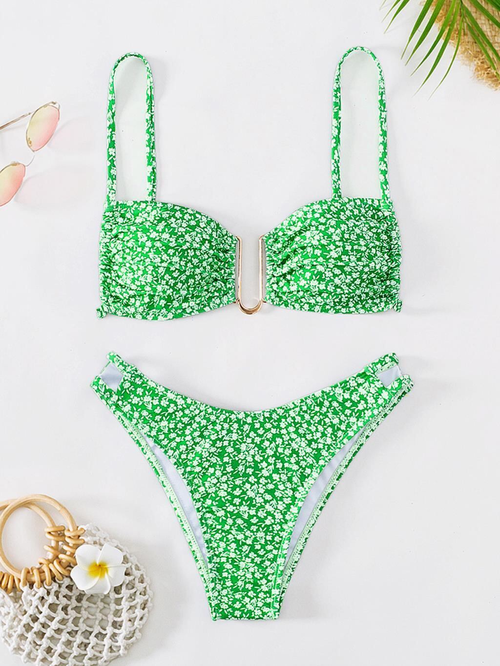 送料無料 2023 頭が変な花柄ビキニリングリンク水着女性のセクシーなネクタイサイド水着海水浴水泳水着ビーチウェア 指輪 AE12125553413827508