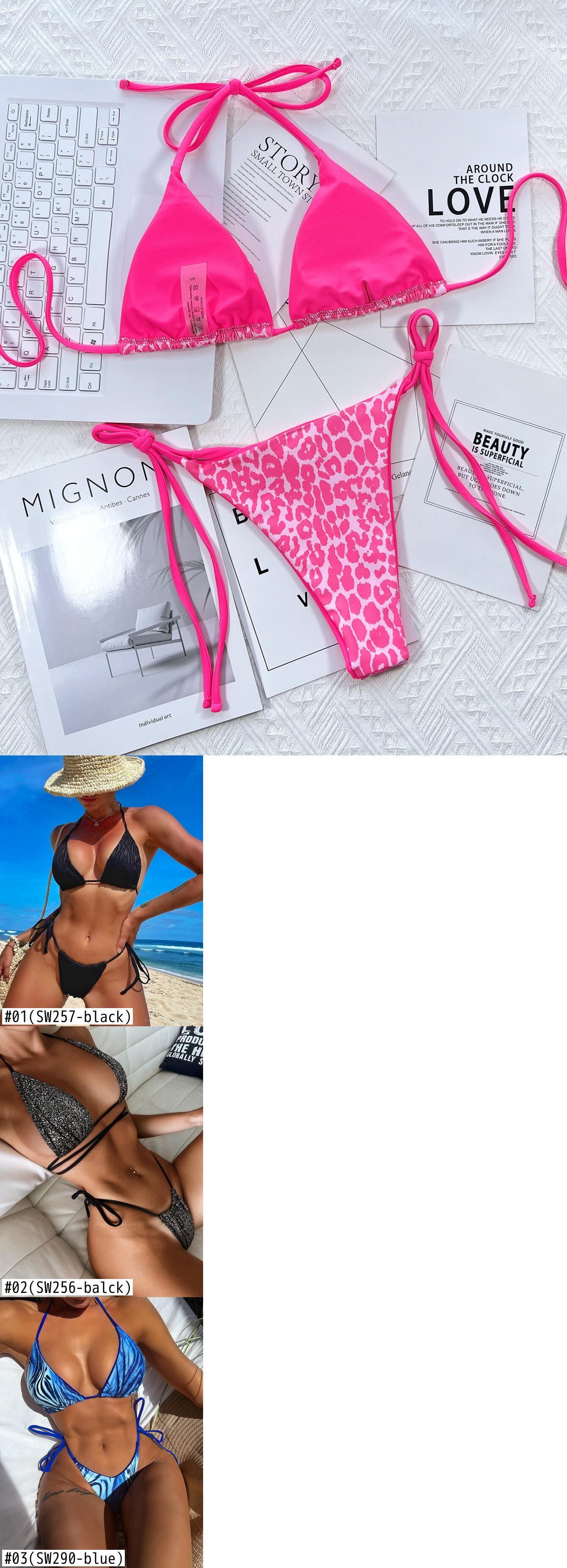 送料無料 2023 女性三角ラップヒョウ水着 2 ピースレースアップホットビキニセットセクシーなホルター水着プッシュアップブラジル Biquini AE121233225664508310