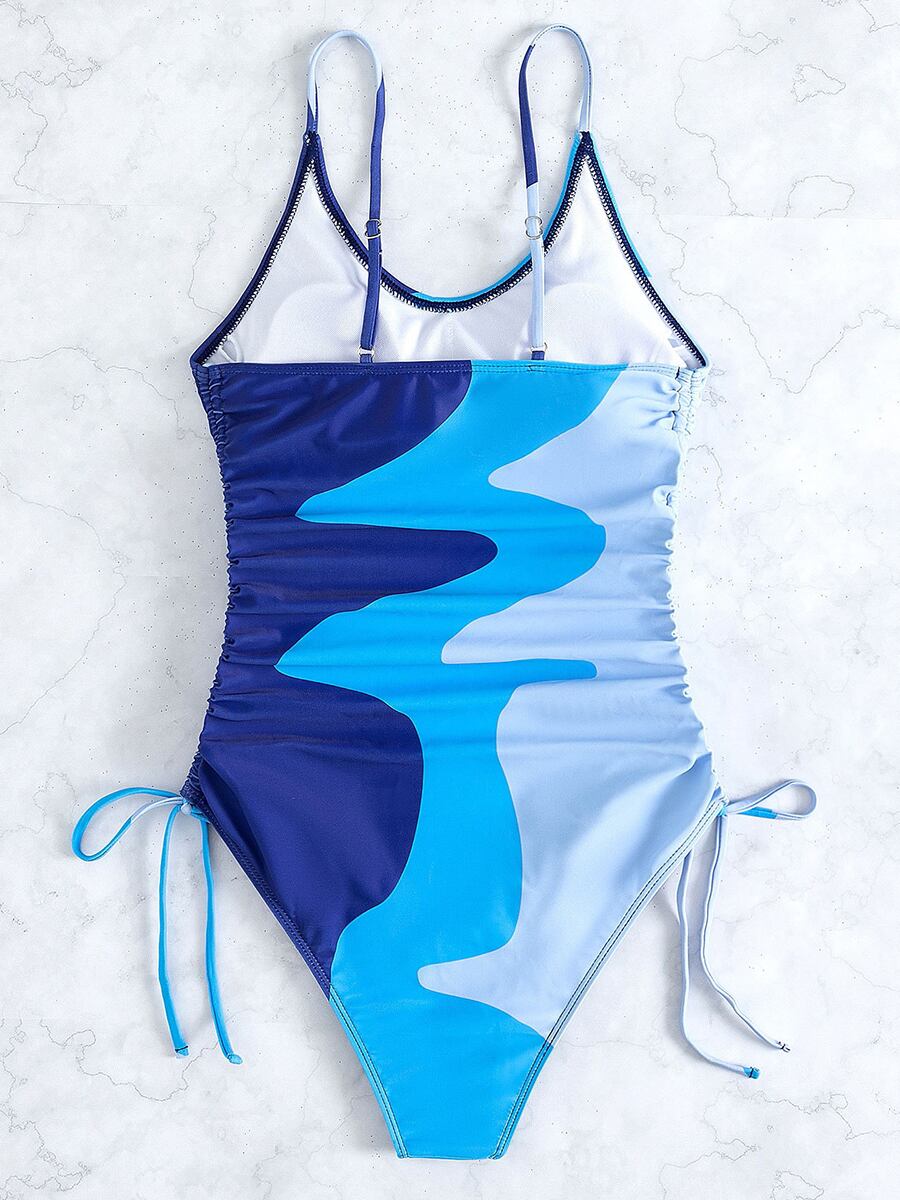 送料無料 2023 巾着水着ワンピースビキニプリント水着女性ストラップ海水浴水着水泳ビーチウェア AE121233226776426731
