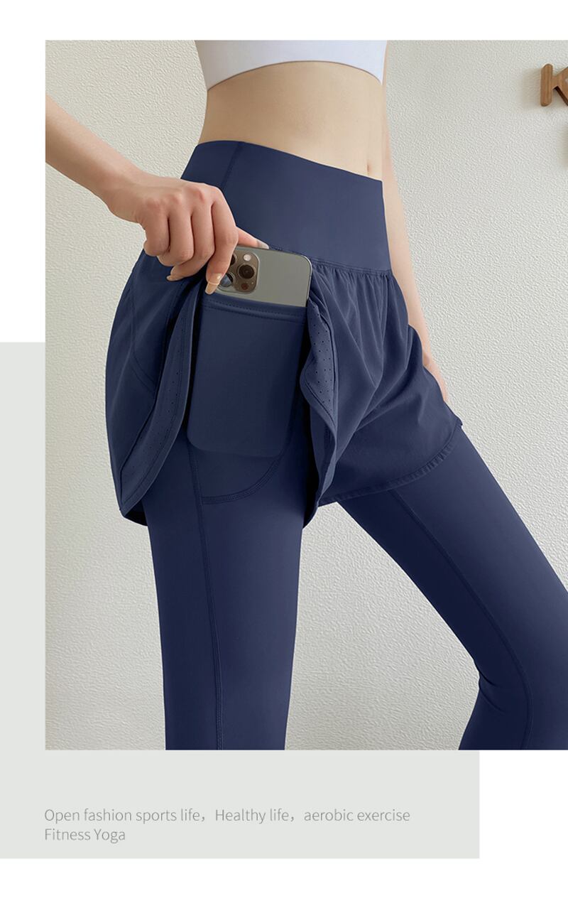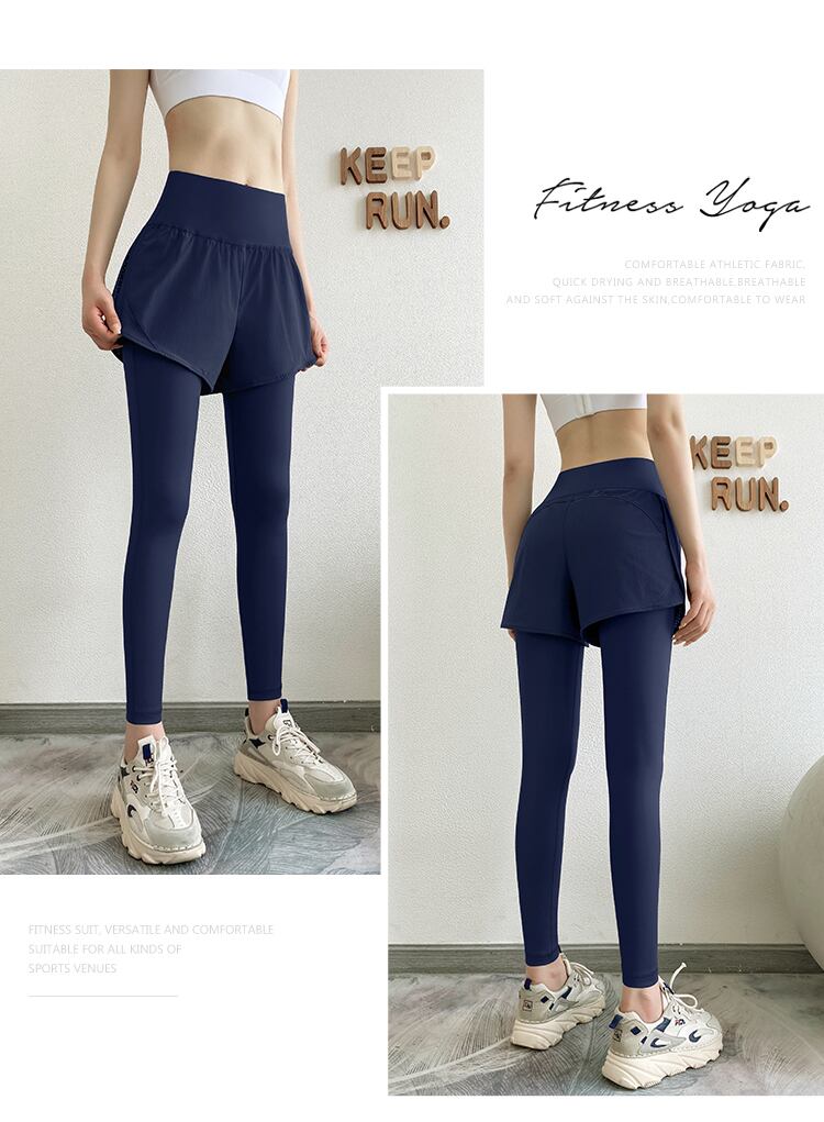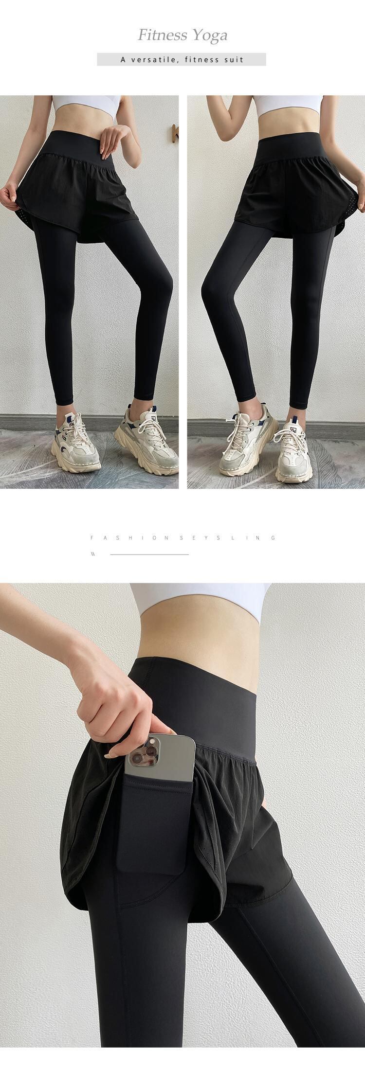 送料無料 2023 女性ヨガパンツポケットフィットネス偽二枚スポーツウェアトレーニングジョギングタイツジム弾性ウエストレギンス エラスティック 伸縮 ストッキング ソックス AE1212332223613308430