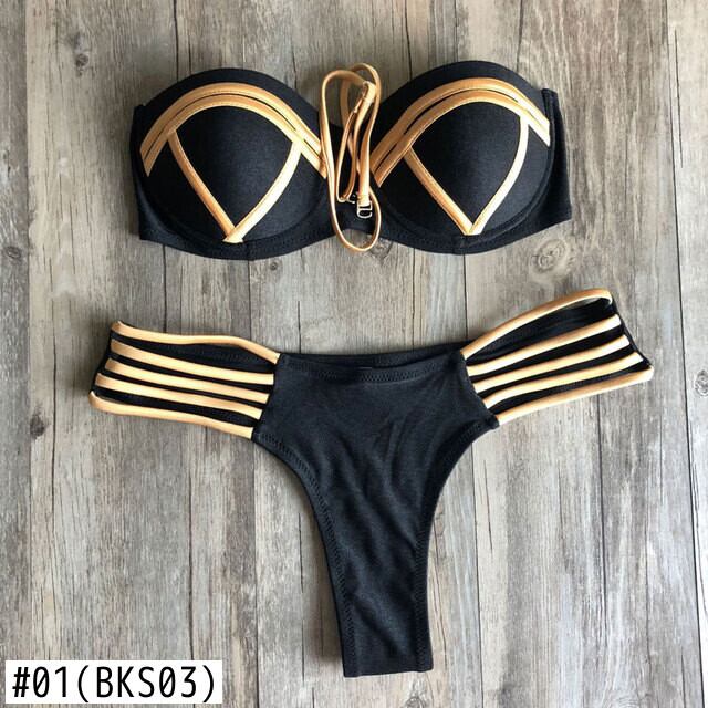 送料無料 2023 セクシーなゴールド光沢のある女性ホルタービキニセット固体セクシーな水着夏のビーチ水着女性パッド入りバンドゥビキニセット Biquini サマー 夏物 ソリッドカラー AE1212332232726692602