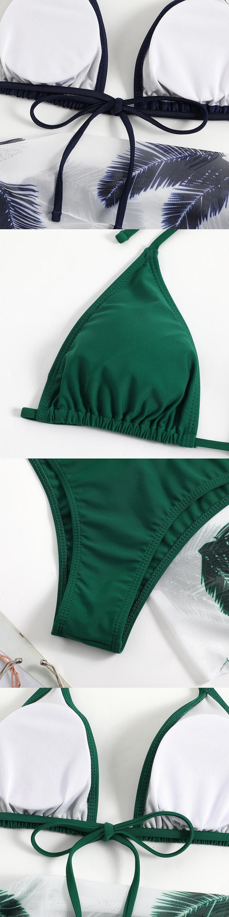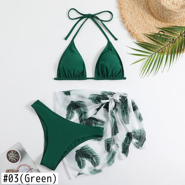 送料無料 2023 レディース水着プリントセクシーなスリーピースビキニメッシュドレスハンギングネックビキニ水着 AE1212332292837005668