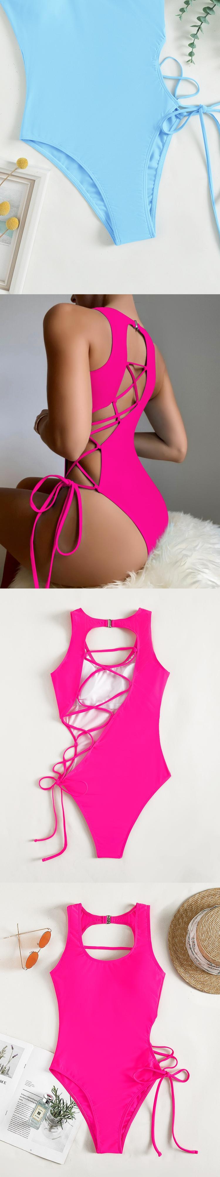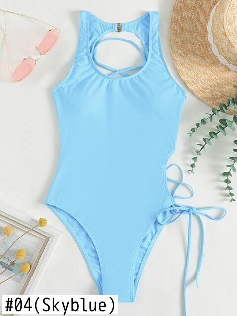 送料無料 2023 プリントレースアップバック水着ワンピース固体水着女性水着パッド入り夏ビーチウェアボディスーツ サマー 夏物 ソリッドカラー AE121233225631316975