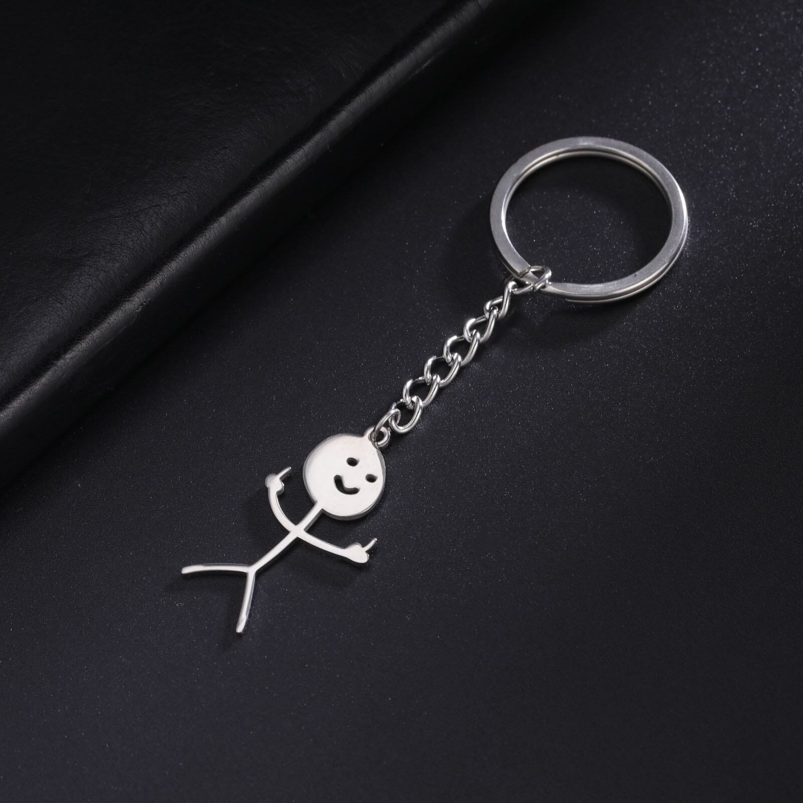 送料無料 Dreamtimes 面白い落書きキーチェーン落書きステンレス鋼中指バッター男性ペンダントキーリングジュエリーカップルヒップホップ 指輪 AE1212332267624642139