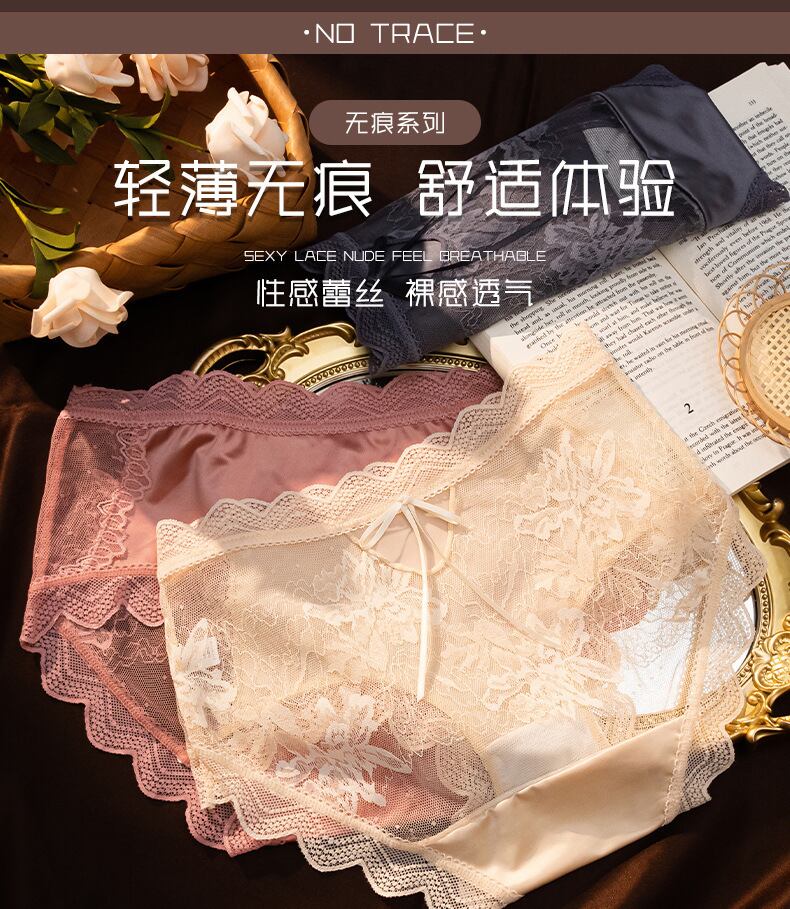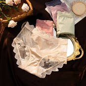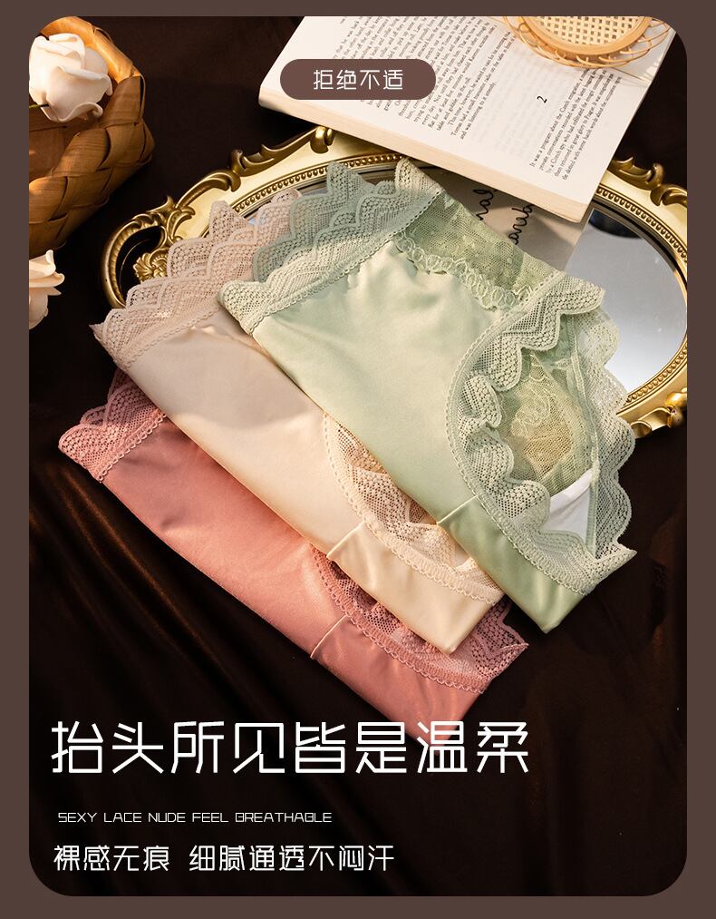 送料無料 Mijia 3 個アイスシルク下着女性のセクシーなレース中空通気性シルク股ミッドウエストサテンフェイスガールズショーツ ブルマー AE1212332271496231862