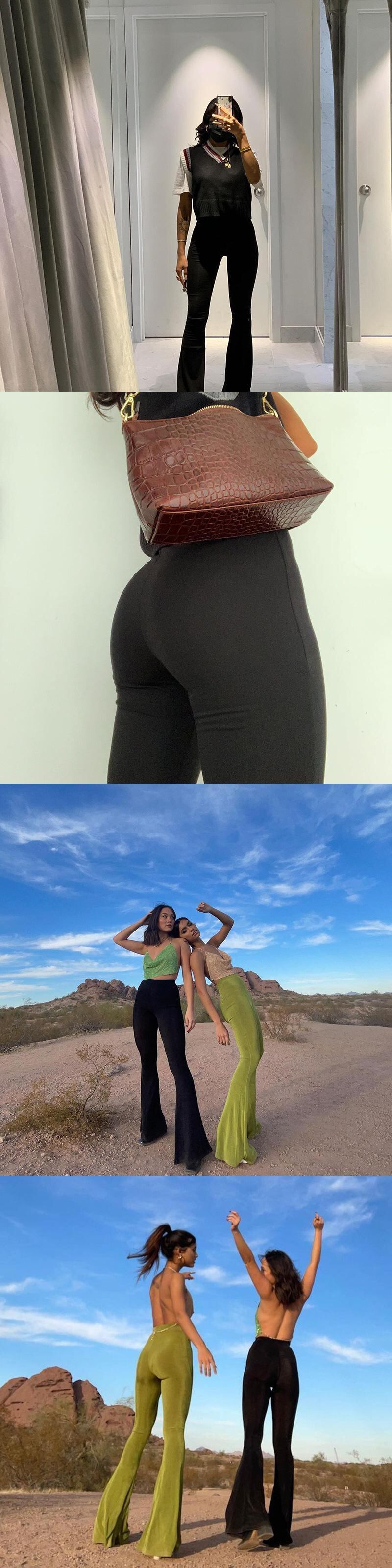 送料無料 固体黒人女性パンツスリムフィットウエストストリートフレアパンツ女性服全身カプリパンツ女性 ブラック ソリッドカラー AE1212332232513123940