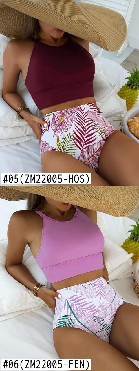 送料無料 2023 ウエストビキニ女性ネック水着プリント水着パッド入りビーチウェア海水浴水泳水着 AE121233227379328226
