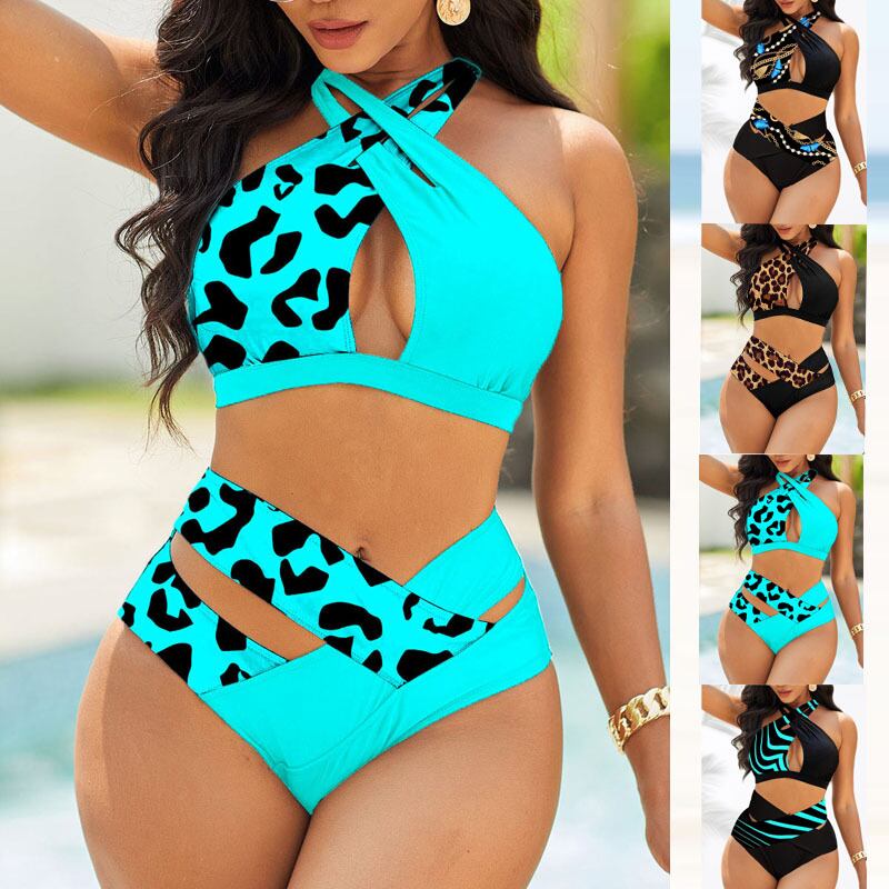 送料無料 2023 女性のセクシーなストライプ水着ウエストヒョウ柄ビキニセット 2 枚タンキニス夏ブラジル水着 サマー 夏物 AE1212332295403756310