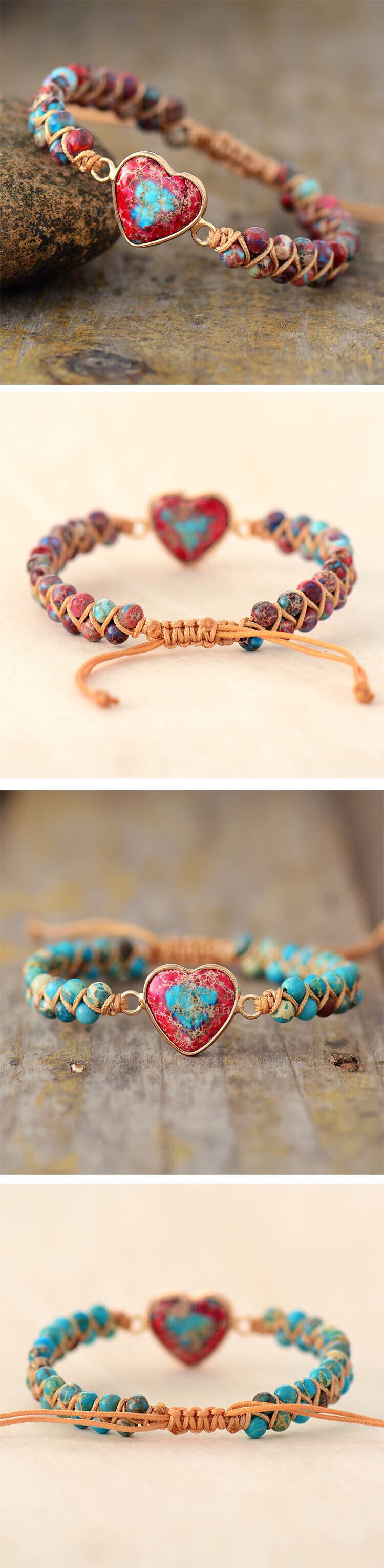 送料無料 女の子のスイートエンペラーストーンピーチハート二重層手織りブレスレット調節可能なブレスレット 大人ガーリー スウィート キュート カジュアル アジャスタブル AE1212332281546799362