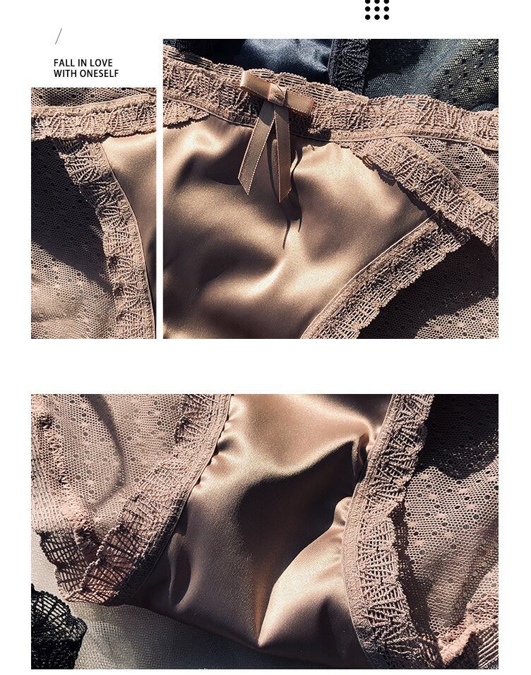 送料無料 女性のセクシーな綿レースのシームレスなちょう結び下着シルクシームレスなパンティー女性のローウエスト リボン コットン AE1212332253489711757