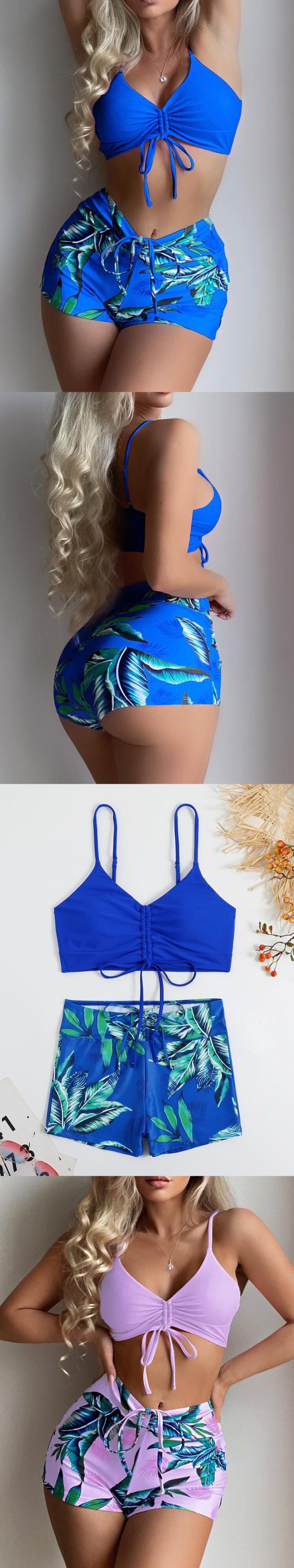 送料無料 2023 タイダイビキニ巾着水着女性ウエストショーツ水着パッド入り水着水泳ビーチウェア夏 サマー 夏物 ブルマー AE1212332224744532818