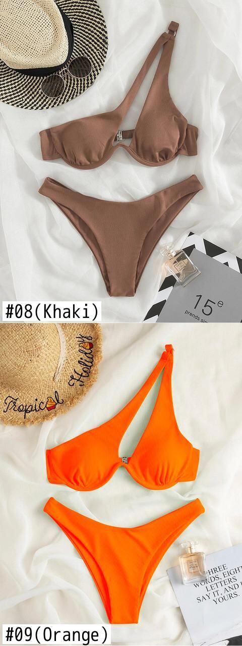 送料無料 セクシーなビキニ水着カットアウト女性の水着ワンショルダービキニカット水着プッシュアップビーチビキニセット AE1212332248465615145