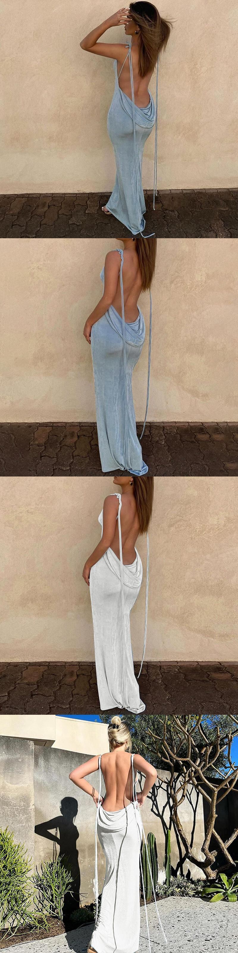 送料無料 Y2K スイングカラーバックレスノースリーブ巾着中空アウトスリットセクシーなマキシウエディングドレス夏の女性パーティーローブ サマー 夏物 リング 指輪 AE1212332243663454709