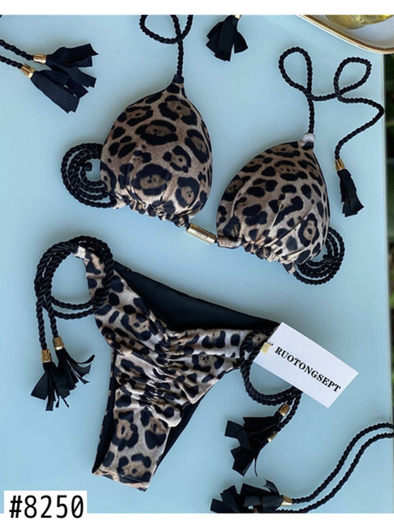 送料無料 2023 セクシーな水着ビキニセット女性水着ビキニ織水着女性のレースアップ三角スプリットビキニプリント水着 AE121233222746029795