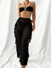 送料無料 無地クリスクロスホルタービキニセットフリルパンツバンドー水着女性 2023 ホワイト水着水着ブラック AE123565533221087869802