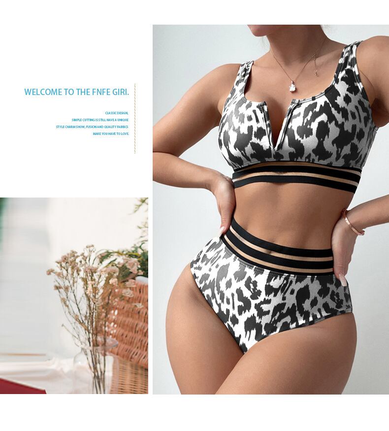 送料無料 メッシュテープビキニ 2023 女性 V ネック水着ヒョウ柄水着ウエストビーチウェア水着夏 プリント サマー 夏物 Vネック AE1235655332278951763417