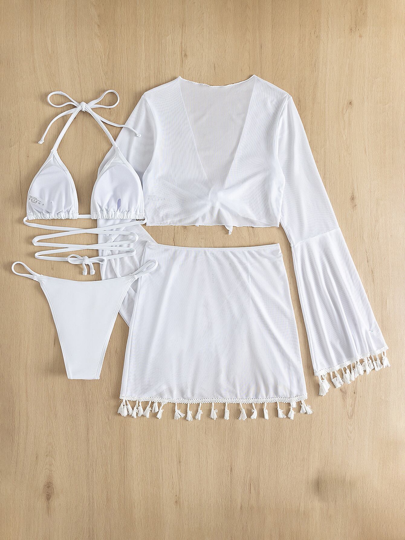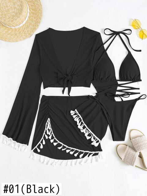 送料無料 4 ピースレースアップ三角ホルタービキニ水着 & カバーアップトップスカートセクシーな水着女性 2023 水着水着 AE123565533229038077964