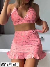 送料無料 3 個プリント水着女性ホルタービキニ & ビーチスカートセクシーな水着 2023 水着水泳スーツビーチウェア AE1235655332273678338992