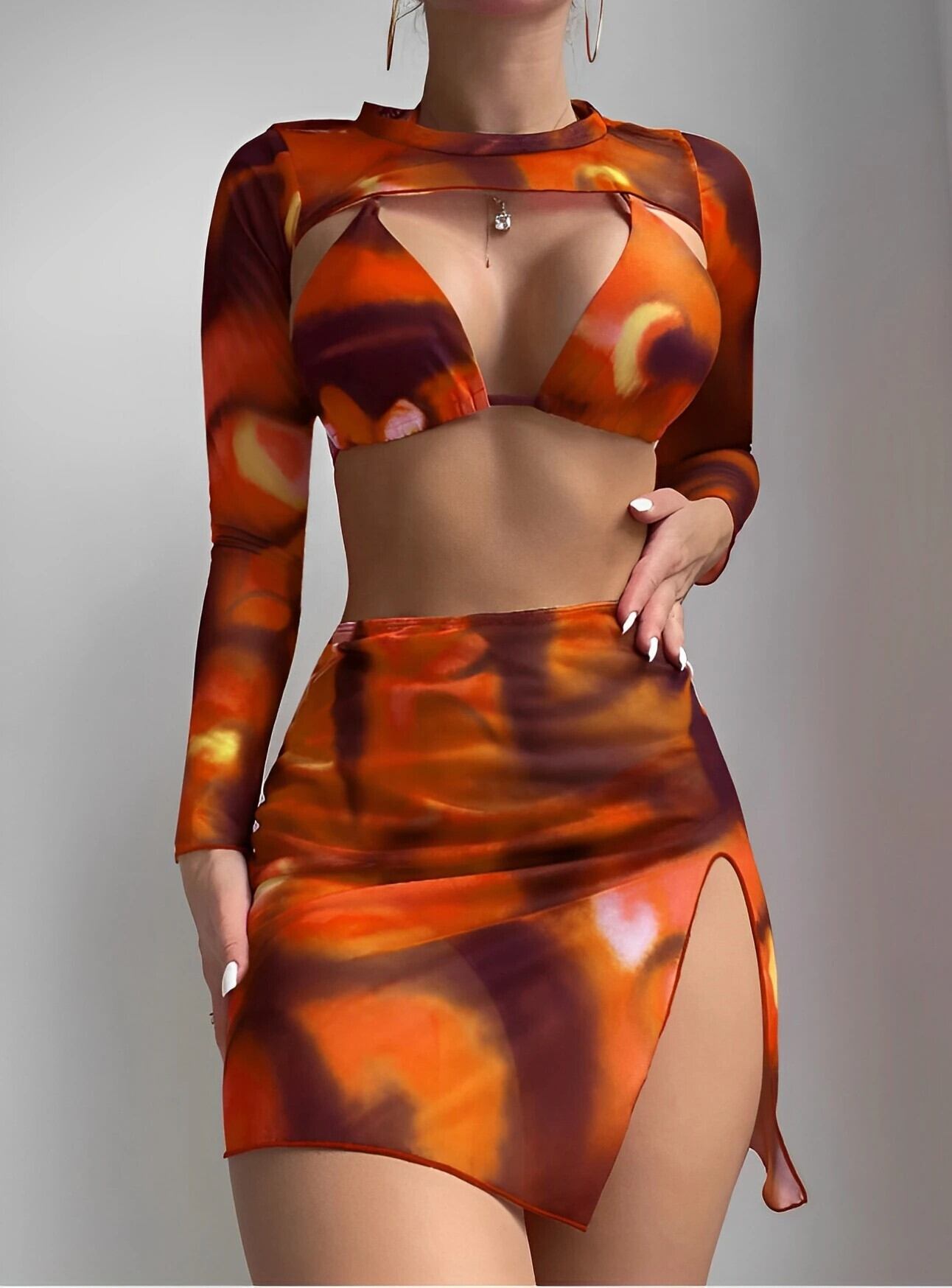 送料無料 4 ピースタイダイビキニ 2023 レディース & カバーアップトップ & スカート水着ホルター水着ビーチウェア水着水着夏 サマー 夏物 AE123565533221372827945