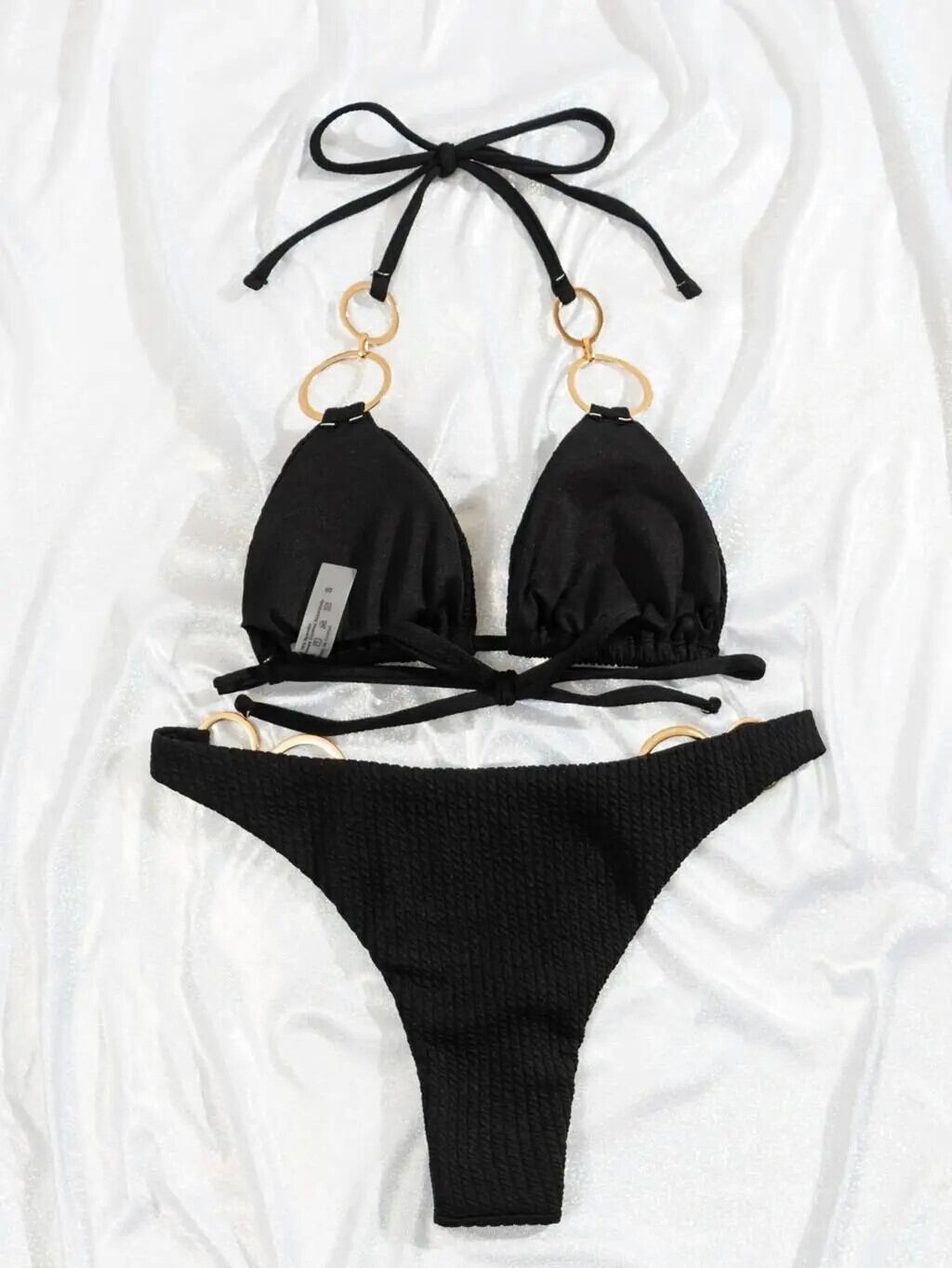 送料無料 テクスチャードリングリンクホルタービキニ固体水着セクシーなブラジル水着女性 2023 入浴水泳水着ビーチウェア レッド 指輪 ソリッドカラー AE1235655332251305613742