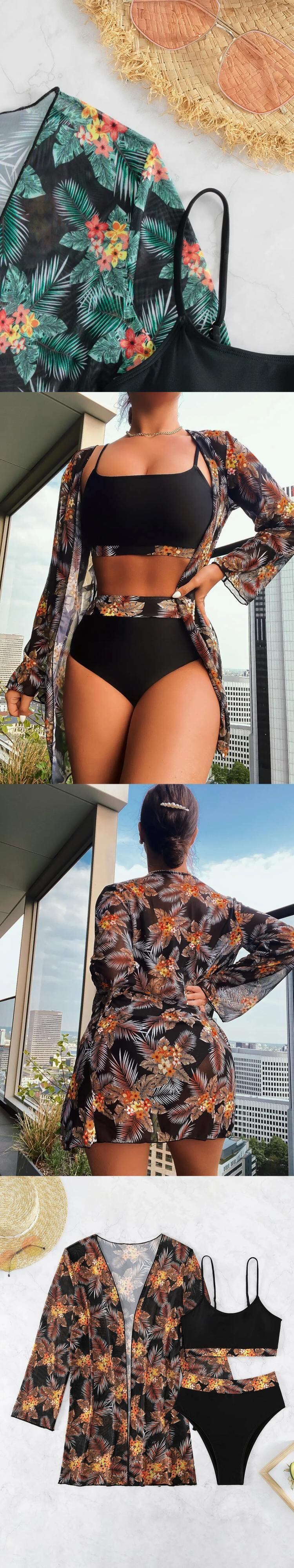 送料無料 3 ピースプリントウエストビキニ 2023 女性水着水着ビーチウェア海水浴水泳水着 AE1235655332234937624128