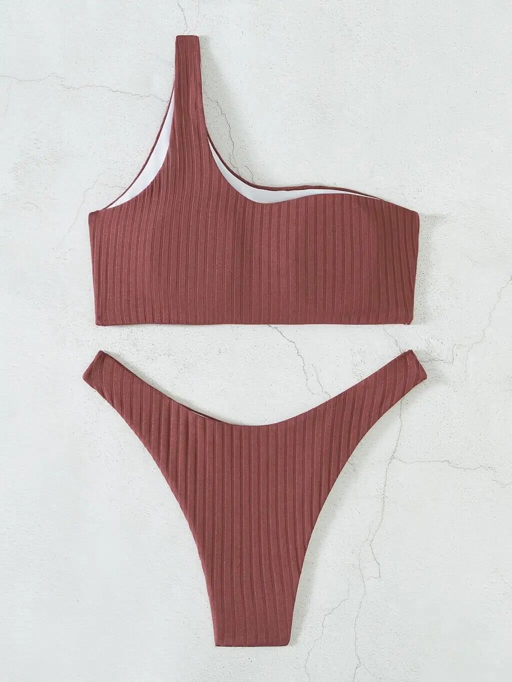送料無料 ワンショルダービキニ 2023 女性ウエスト水着固体水着ストライプビーチウェア海水浴水泳水着 ソリッドカラー AE1235655332253500012951