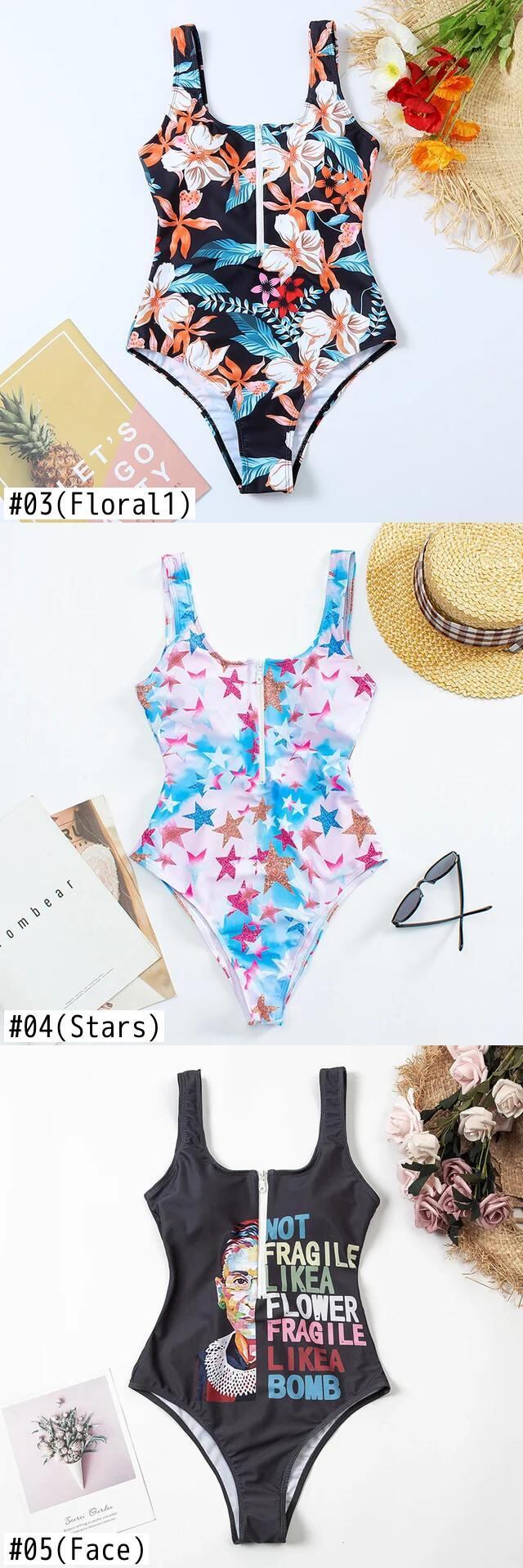 送料無料 2023 プリントジッパー水着ワンピースセクシーな水着女性花海水浴者水泳水着ビーチウェア 花柄 AE1235655332241409837690